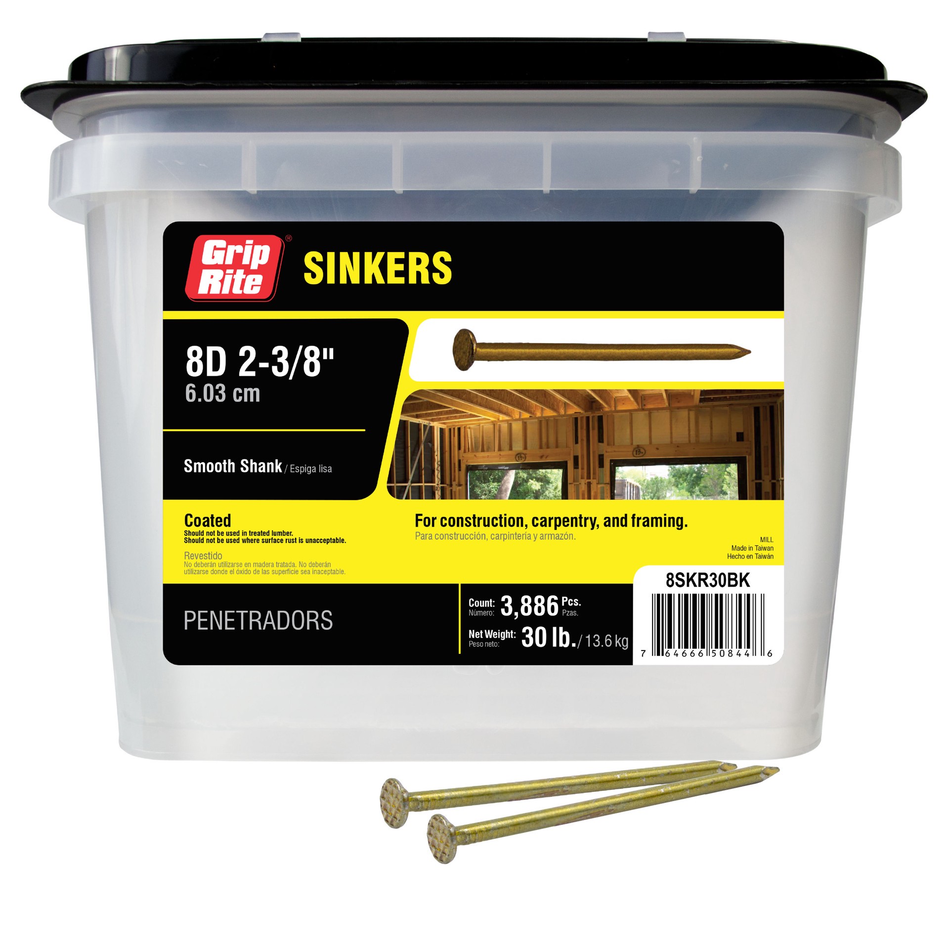 Package quantity approximately 3886 pieces. For general construction, carpentry and framing. Checkered countersunk head is designed to sink flush with surface. Vinyl coating eases nail driving and pro…