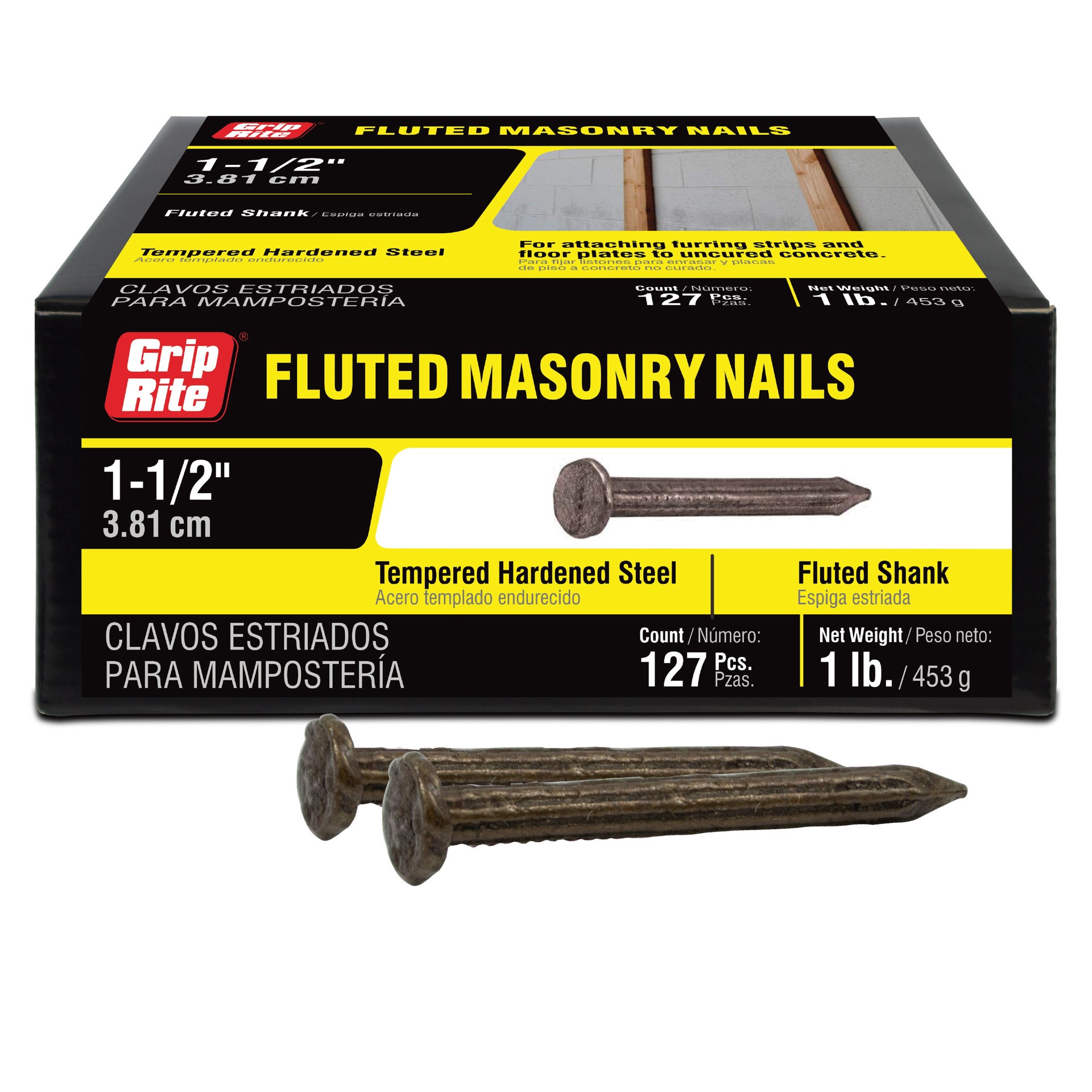 Package quantity approximately 127 pieces. For attaching furring strips and floor plates to uncured concrete. Fluted shank for better holding power. Tempered hardened steel. Bright finish for interior…