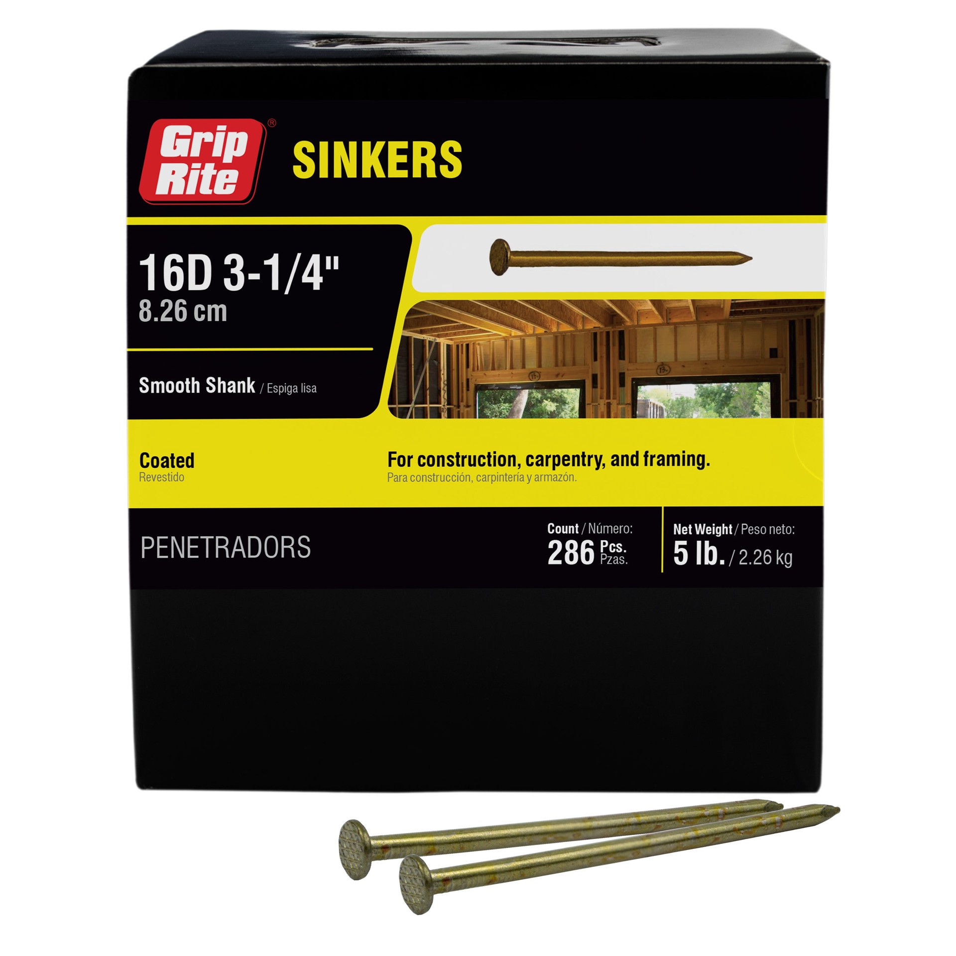 Grip-Rite 3-1/4-in x 0.162-in 16d Vinyl-coated Smooth Shank Sinker nails ( 286 -Per Box )