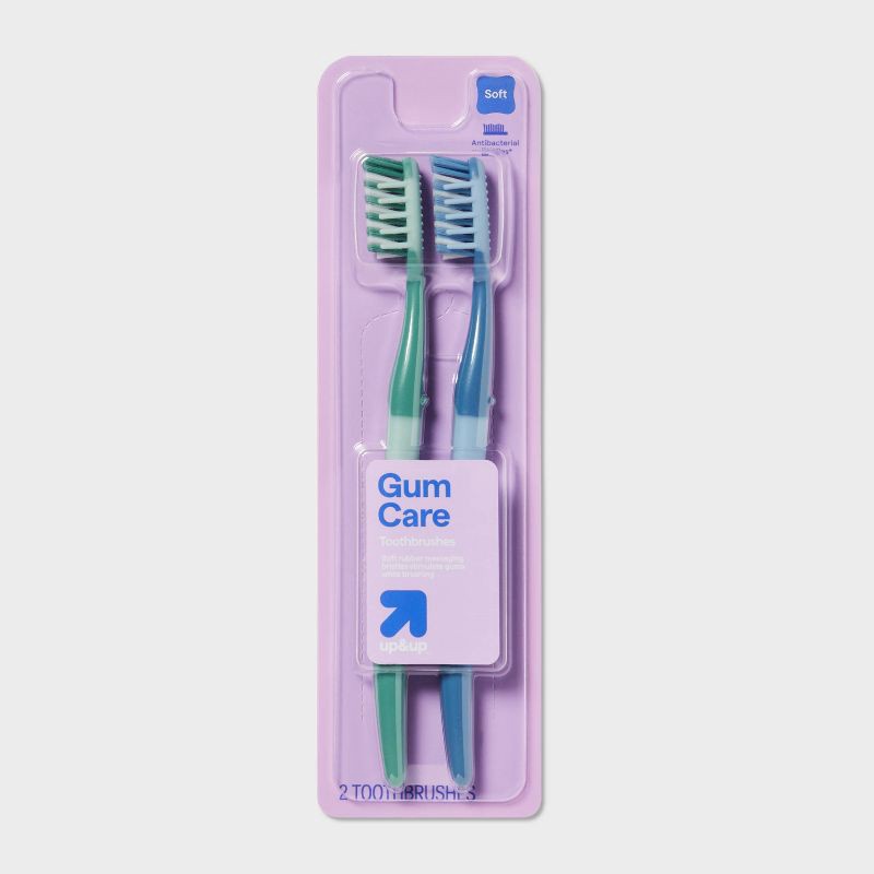 Upgrade your oral hygiene regimen with the help of this 2-Pack of Soft Gum Care Toothbrushes from up&up™. Crafted from plastic in two different colors, this two-pack features toothbrushes with soft ru…