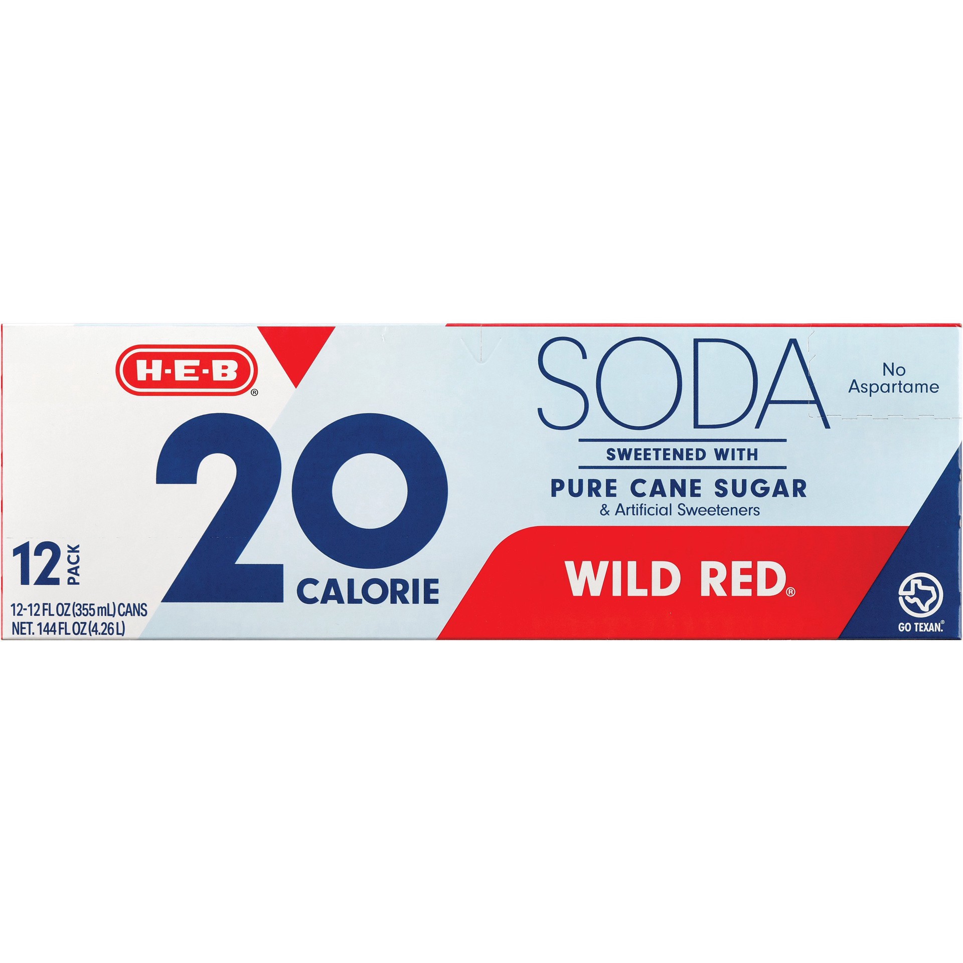 With only 20 calories in every can, H-E-B Wild Red Low-Calorie Soda is made with pure cane sugar and artificial sweeteners — but no aspartame! It's the same sweet, creamy taste and caffeinated boost y…