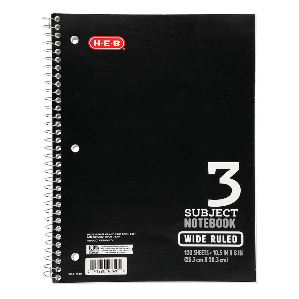 slide 1 of 1, H-E-B 3 Subject Black Wide-Ruled Notebook, 120 ct