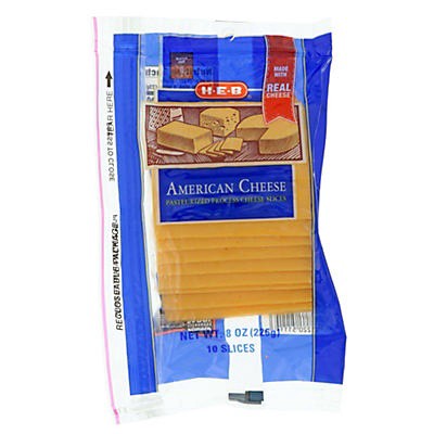 H-E-B American pasteurized process cheese slices. Made with real cheese.