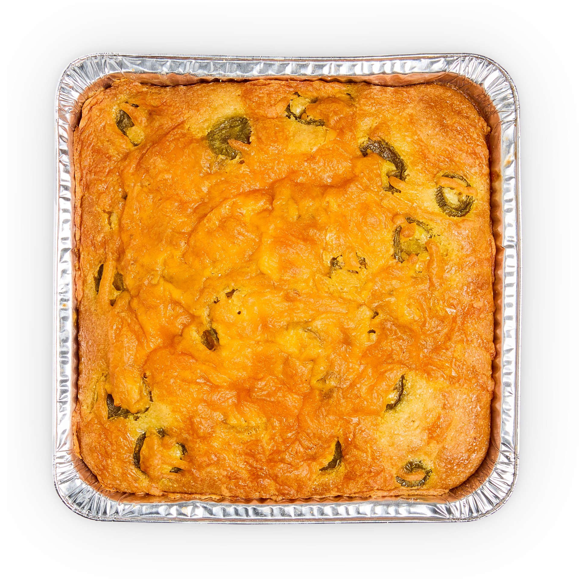 jalapeno cheese cornbread (cornbread (wheat flour (wheat flour, malted barley flour), sugar, water, eggs, soybean oil, cornmeal, leavening (sodium acid pyrophosphate, baking soda), modified corn starc…