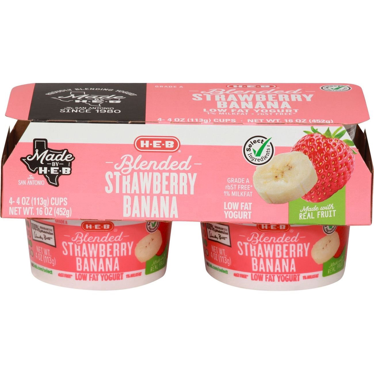 Enjoy the delicious duo of strawberries and bananas in every spoonful of this H-E-B blended low-fat yogurt. It's made with rBST-free* milk and contains live and active cultures. Pick up this 4-pack of…