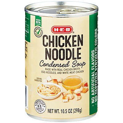 When you're feeling under the weather or just need a quick warm-up, H-E-B Chicken Noodle Condensed Soup always comes in handy. Made with white chicken meat and egg noodles in a savory chicken broth, i…