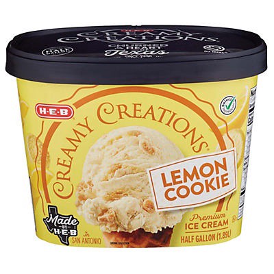 If you're a shortbread cookie fan, scoop up this lemon ice cream by H-E-B Creamy Creations. Churned in the heart of Texas with fresh cream, it has delicious hunks of shortbread and swirls of lemon zes…
