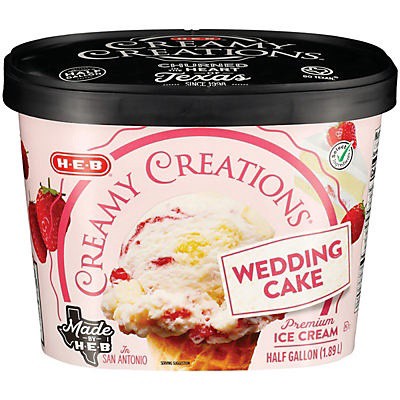 With a taste so refreshingly sweet, you're sure to fall in love with H-E-B Creamy Creations Wedding Cake Ice Cream. Inspired by summertime weddings, this rich cake batter ice cream is mixed with ripe …
