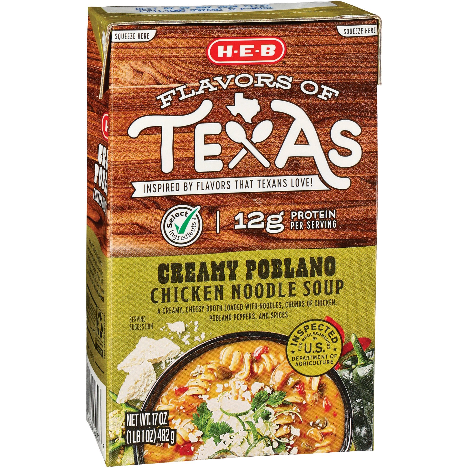 When you want a satisfying lunch that's ready fast, heat up some H-E-B Creamy Poblano Chicken Noodle Soup. Loaded with noodles, chicken and poblanos, the rich broth also has a delicious Monterey Jack …