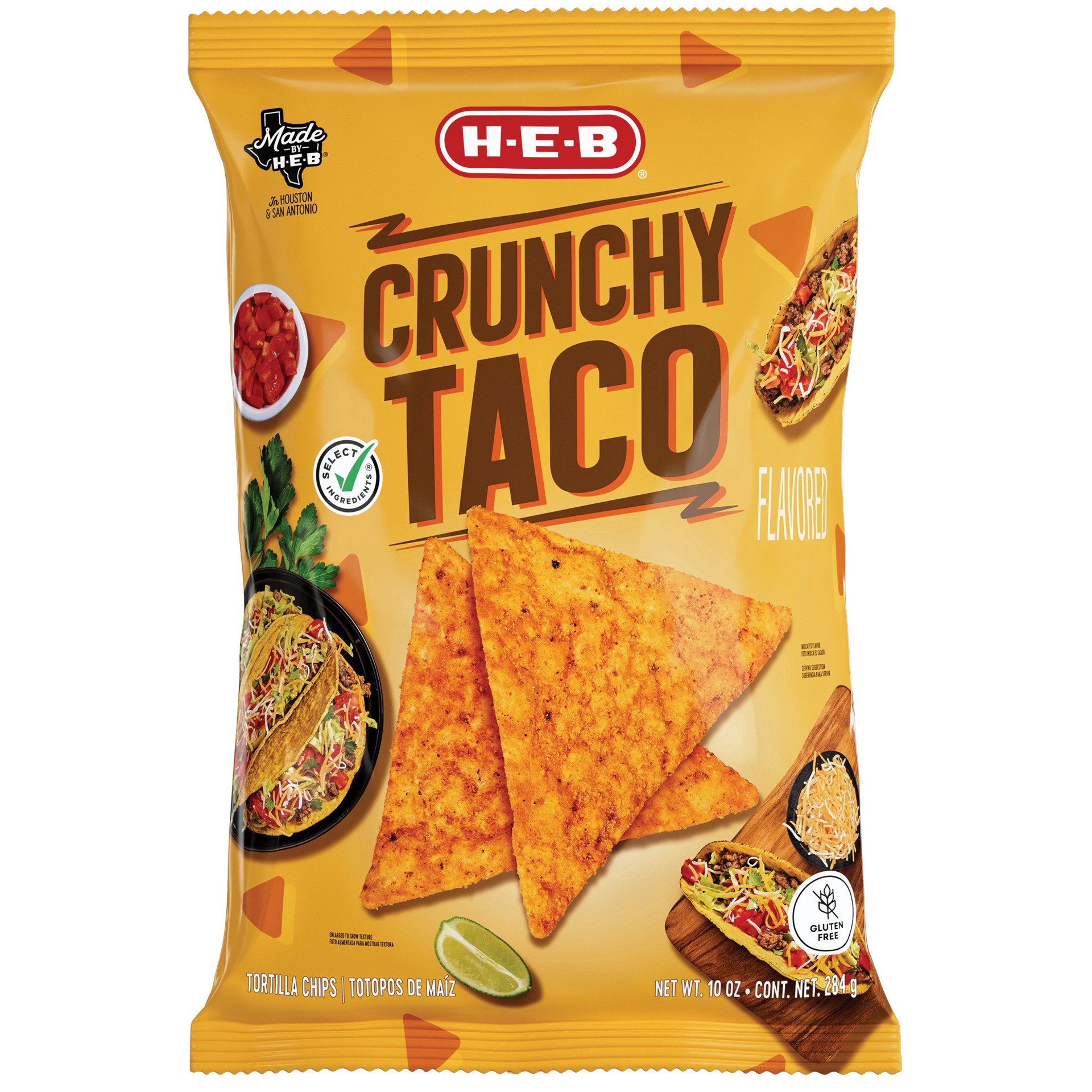 Get a surge of taco taste in every handful of these H-E-B tortilla chips. Crunchy and crispy, they offer the perfect flavor duo of corn and taco seasoning. Add them to your cart and see why they're so…