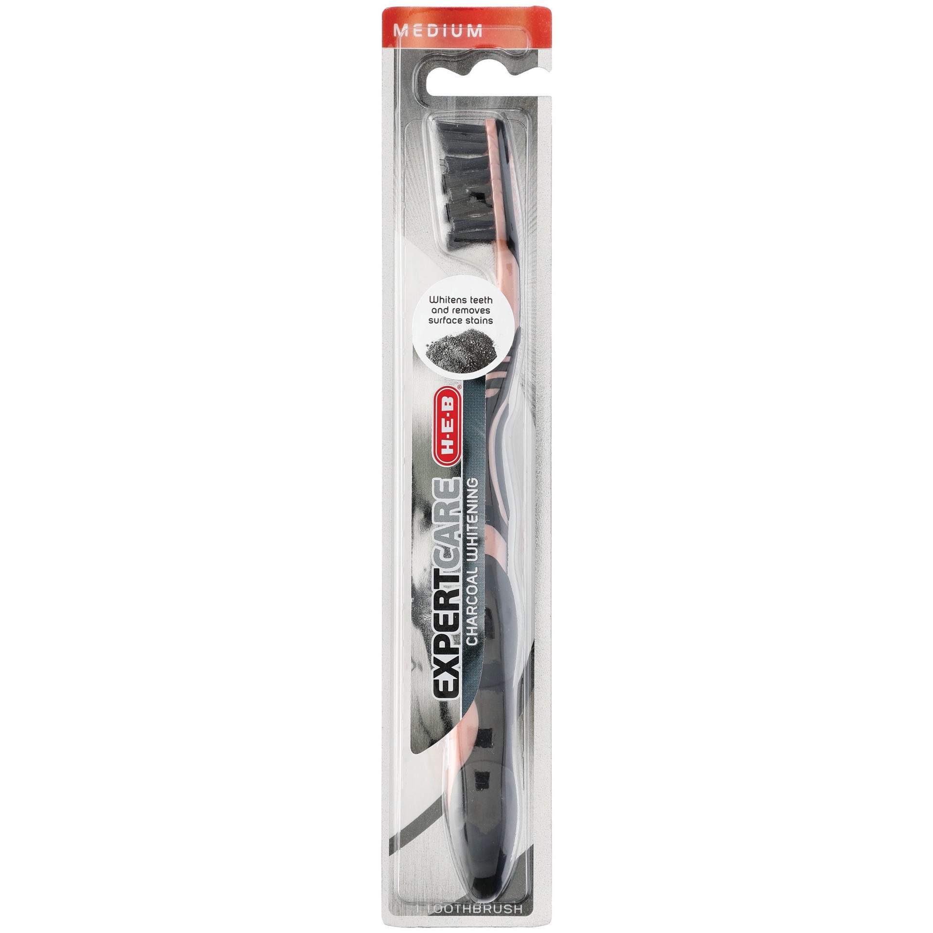 Brush your way to a cleaner smile with H-E-B Expert Care Charcoal Whitening Toothbrush Medium. Charcoal bristles polish softly the dental surface, preserve the enamel and brighten coloring of red wine…