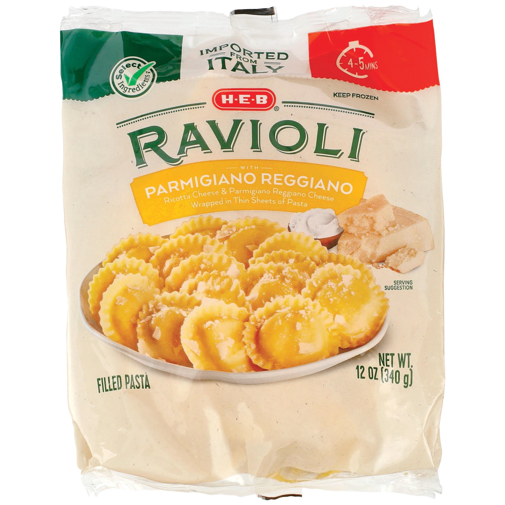 From H-E-B, this frozen ravioli is filled with two types of cheese: ricotta and Parmigiano Reggiano. To prepare these pillowy pockets, simply cook them in boiling water. They're great tossed in pasta …