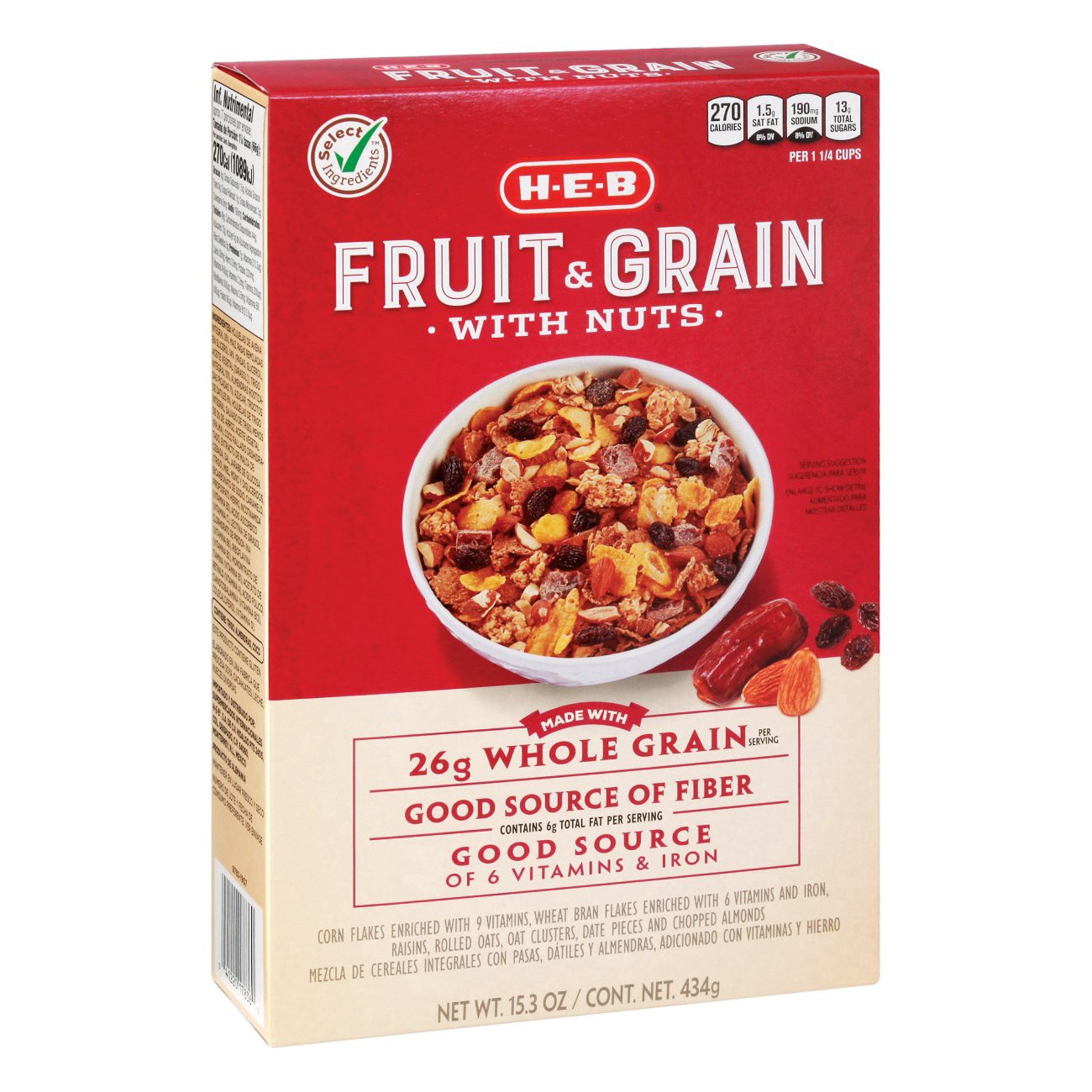 H-E-B Fruit & Grain with Nuts Cereal is a hearty and delicious way to start the day. Dig in and enjoy the terrific crunch of corn and wheat bran flakes, whole grain rolled oats and oat clusters. Plus,…