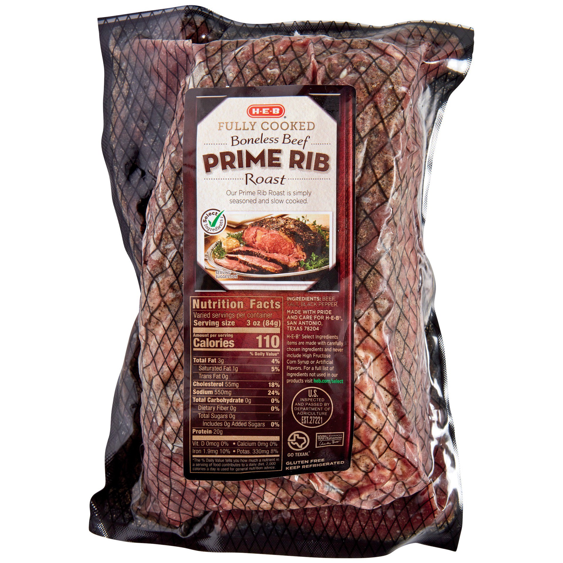 Simply seasoned with salt and pepper, this H-E-B Boneless Prime Rib Roast is already slow-cooked and only needs a little heating up in the oven before dinnertime. Rich with a decadent taste, it's grea…