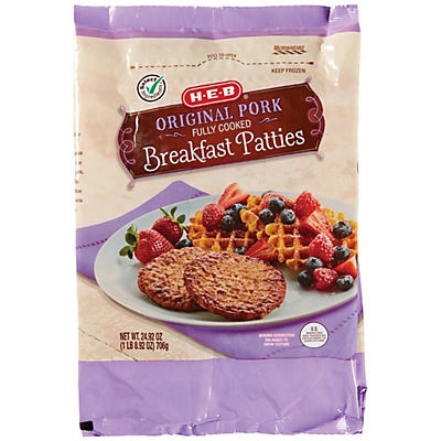 Think you don't have time to cook breakfast in the morning before work and school? Think again! H-E-B Fully Cooked Pork Sausage Patties are ready in minutes! Our sandwich size patties are made with qu…