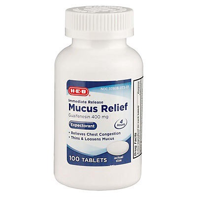 Take these H-E-B immediate release mucus relief tablets and get the relief you need. Formulated with guaifenesin, these tablets relieve chest congestion and thin and loosen mucus for 4 hours of relief…