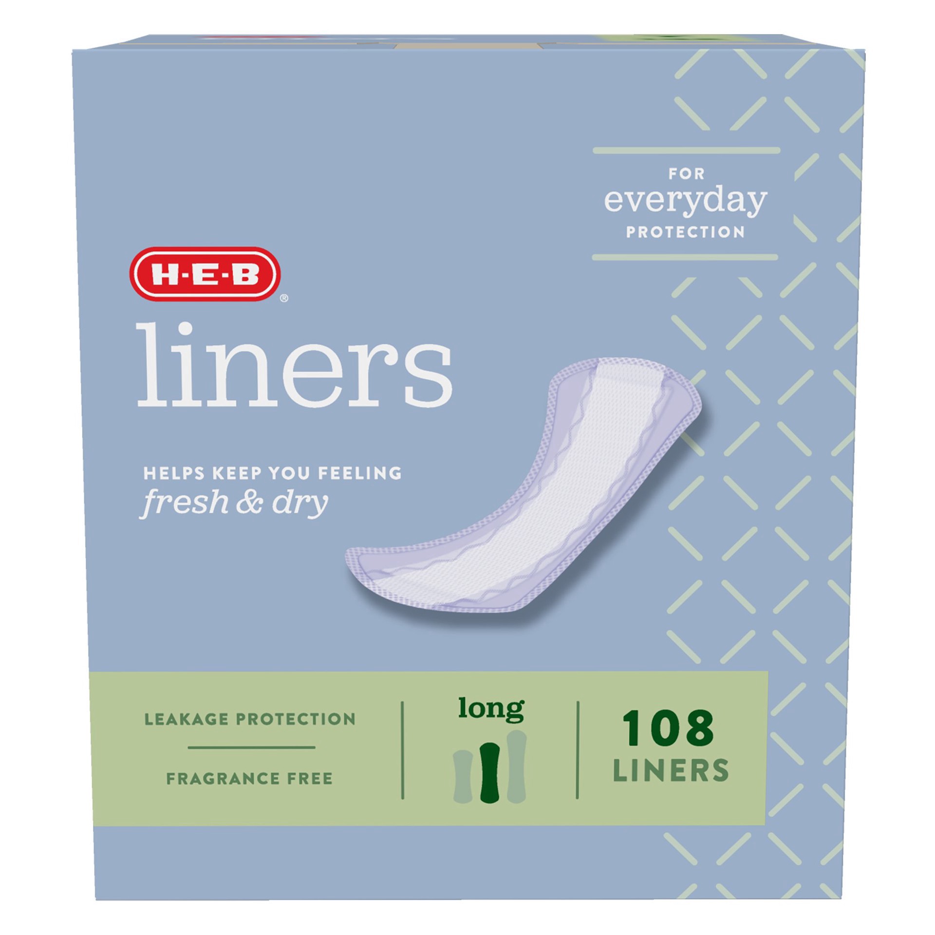 Our H-E-B regular absorbency long length liners are perfect for panty protection and freshness and are designed for everyday wear, slight urine loss, spotting or tampon back up. They provide a comfort…