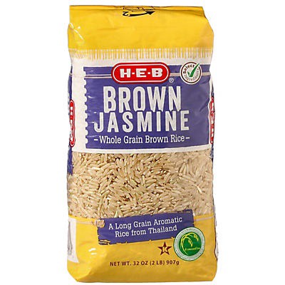 Try some H-E-B whole grain brown jasmine rice for dinner tonight as a side dish or as part of your main. Long grain and aromatic, it's from Thailand and offers an alternative to ordinary white jasmine…
