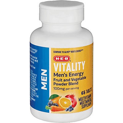 Take these H-E-B men's vitality multivitamin tablets and get an excellent source of 17 vitamins and minerals. Add this supplement to your routine and support energy metabolism.• 65-count bottle of men…