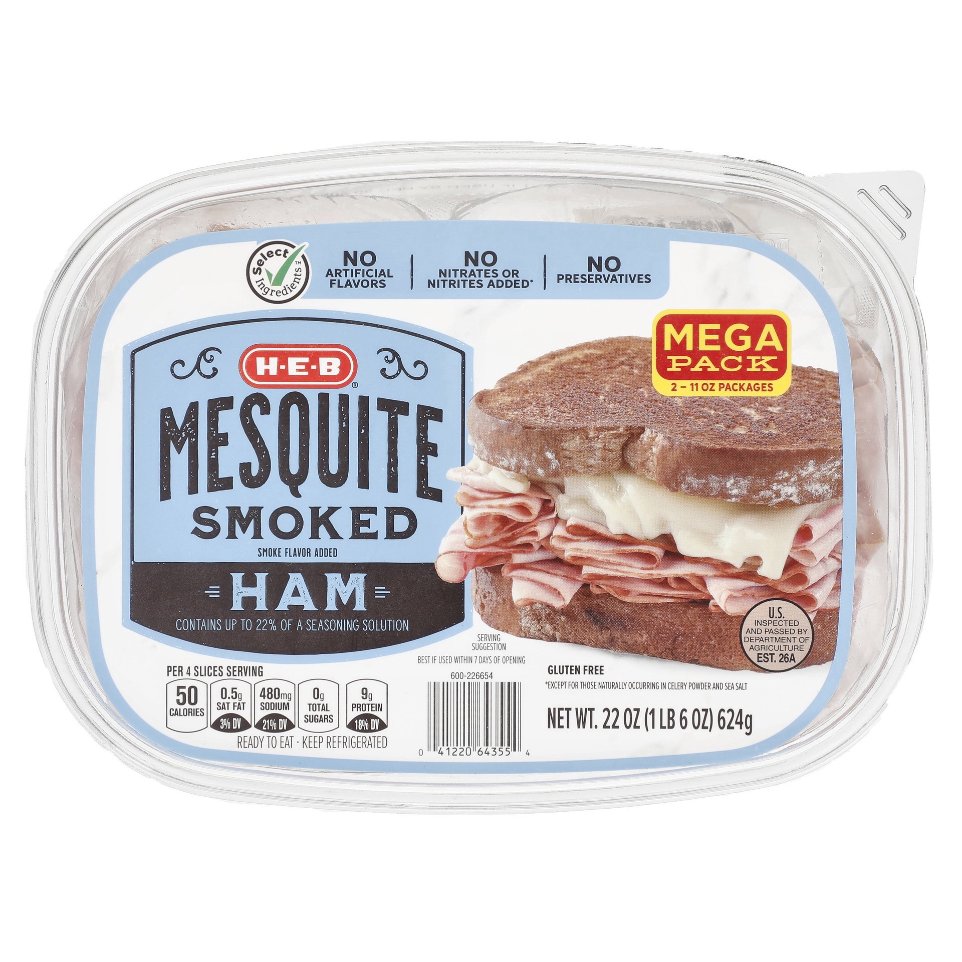 Smoked over mesquite wood, this H-E-B ham is a great lunch meat for sandwiches and cheese & cracker trays. With no artificial flavors or preservatives, it's just simply delicious. Pick up a Mega Pack …