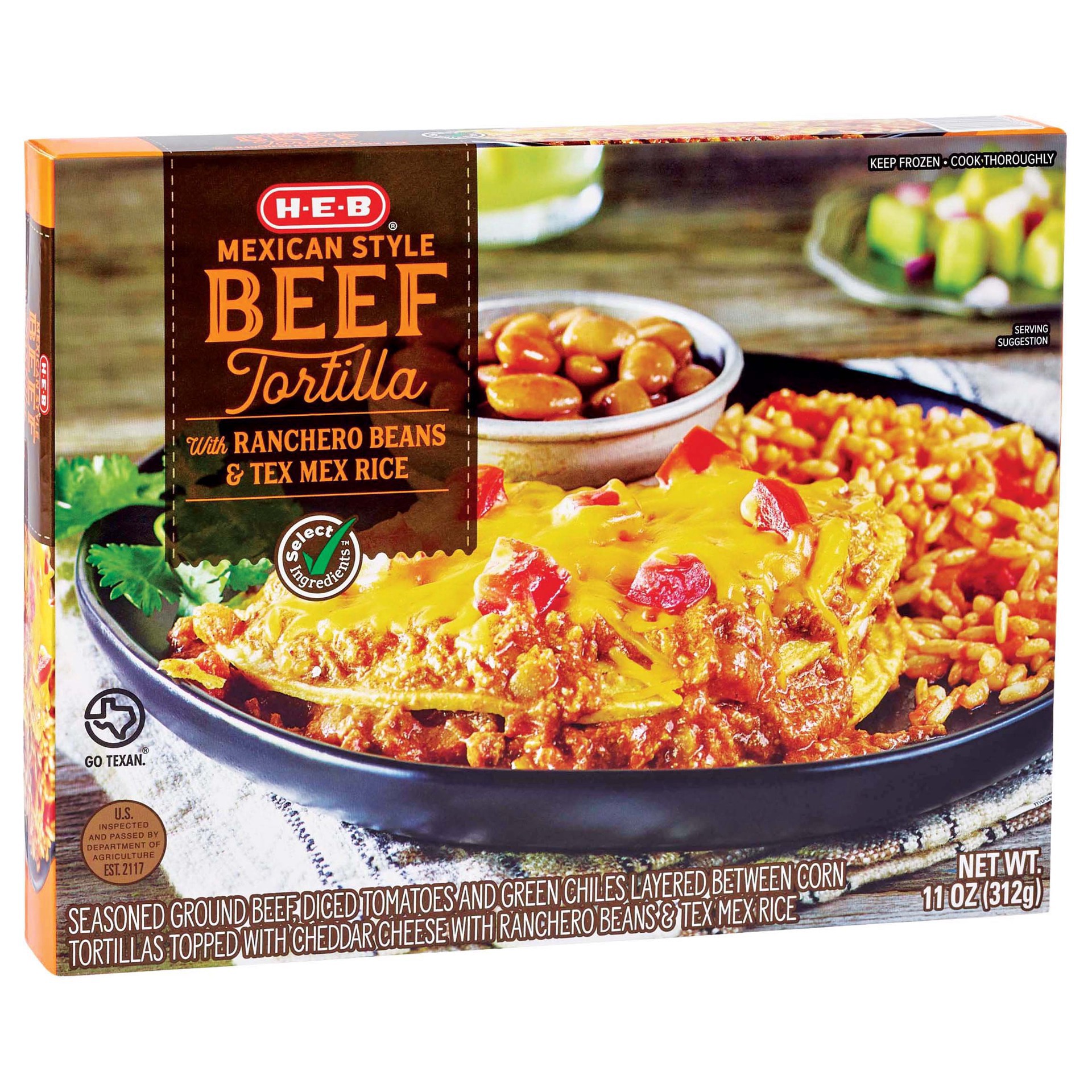 Dinner for 1? Consider it done with this H-E-B Mexican-style entrée. Layered between corn tortillas, there's a mix of seasoned ground beef, diced tomatoes and green chiles. For the finishing touch, it…