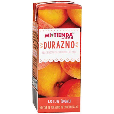 H-E-B Mi Tienda durazno (peach) nectar is from concentrate and contains 15% juice. Give this bright and sweet juice box a try and quench your thirst.• Duranzo nectar juice box• From concentrate• Conta…