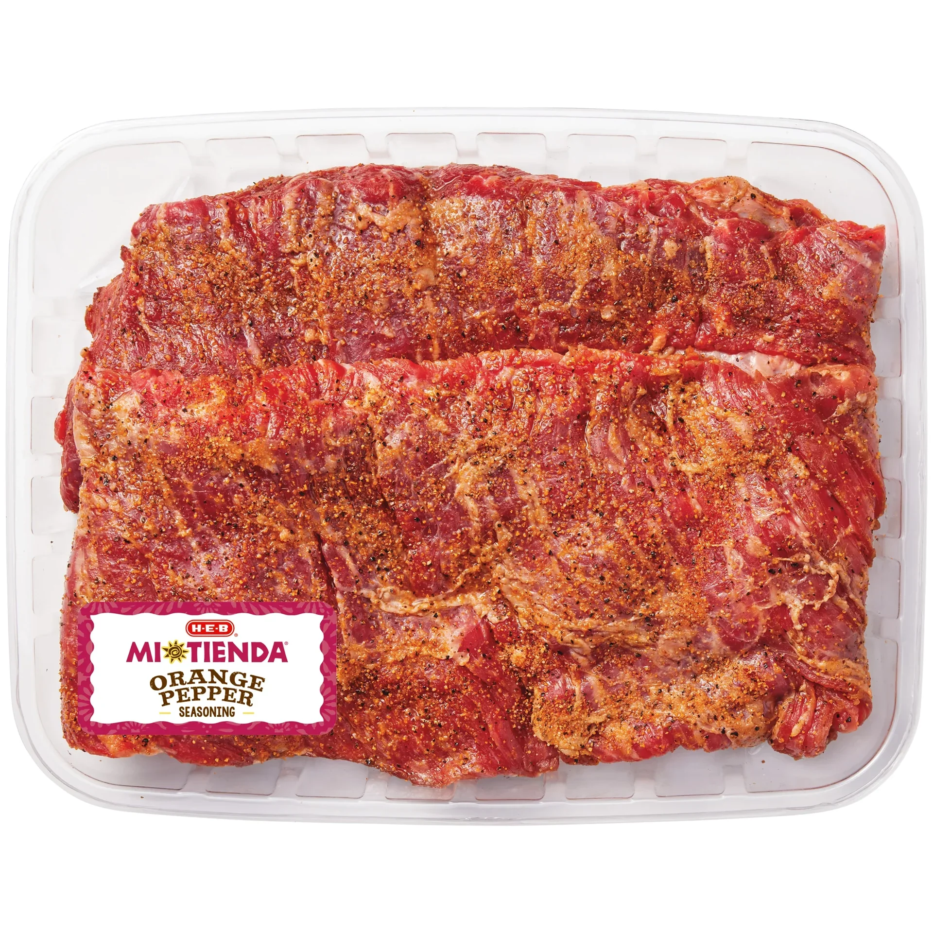 When time's flying at the end of the day, count on the convenience of H-E-B Mi Tienda beef skirt steak to help speed up dinnertime. It's already prepped in a bright and citrusy orange pepper seasoning…