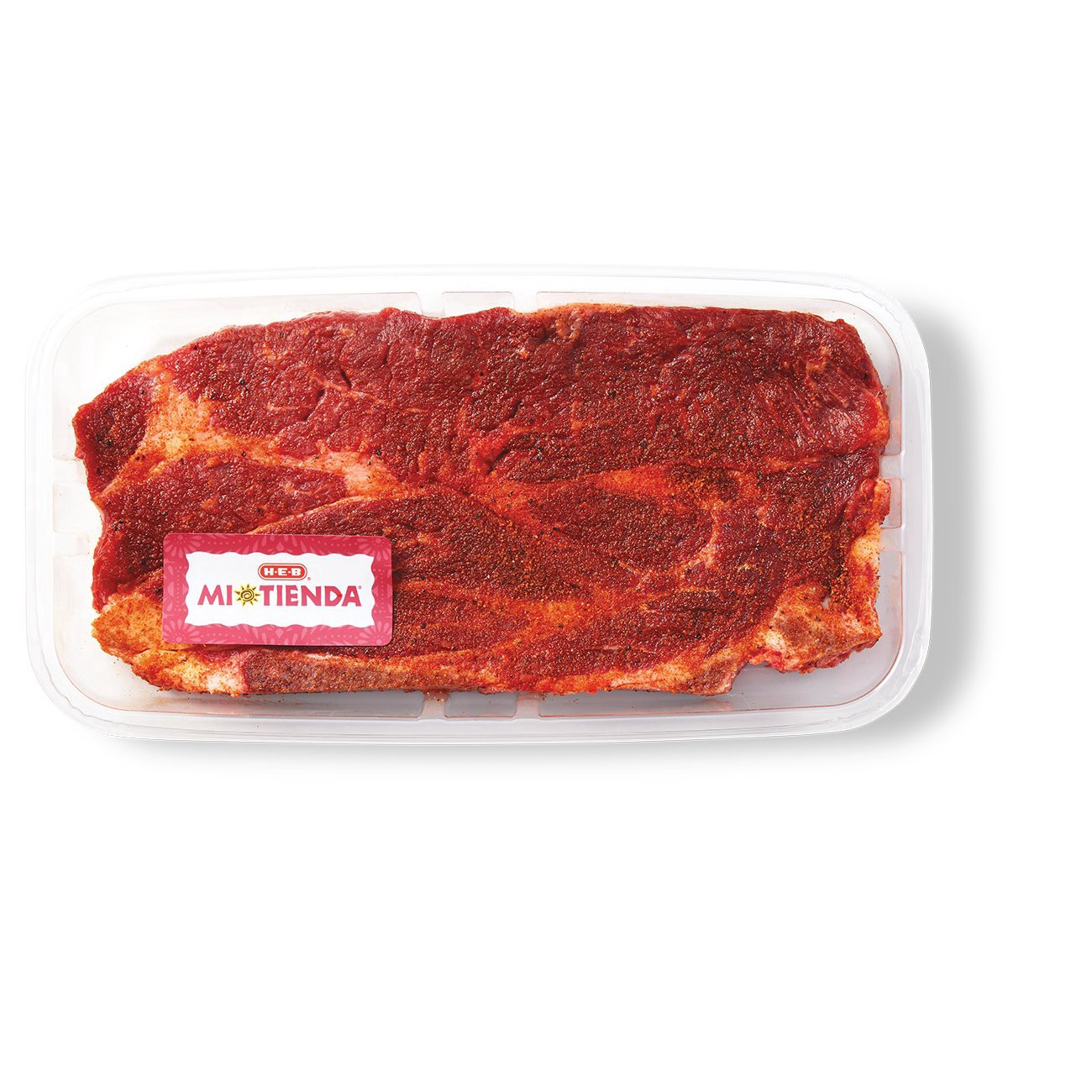 H-E-B Mi Tienda beef agujas is an authentic Mexican-style bone-in cut of chuck steak. Perfectly seasoned with achiote — a smoky, peppery blend — it's ready to grill or pan-broil. Enjoy skipping a coup…