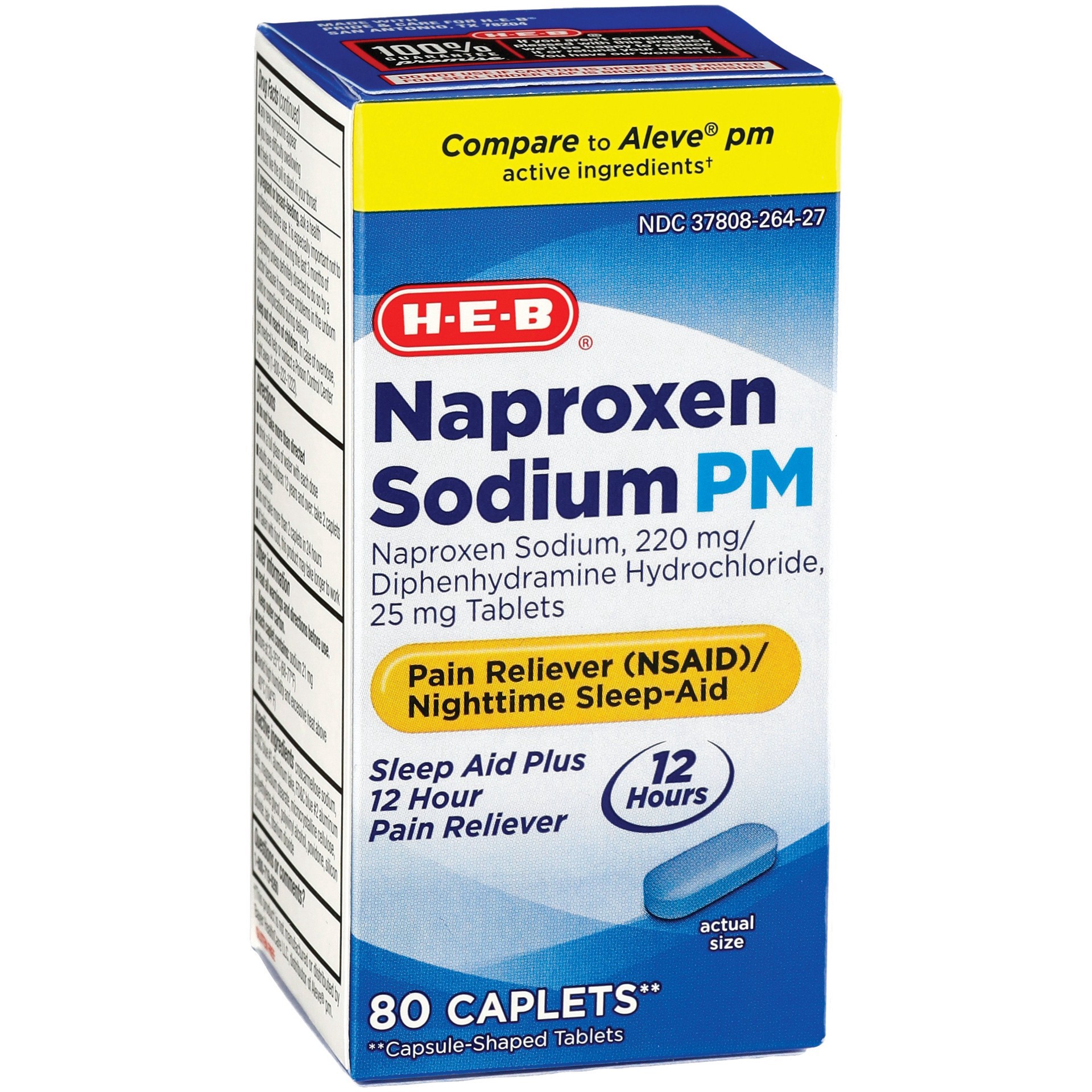 Stop pain in its tracks with our H-E-B Naproxen PM. Just one tablet prevents and relieves body aches and pains. Provides fast relief so you can get back to enjoying sleep more fully.•Sleep Aid Plus•Pa…