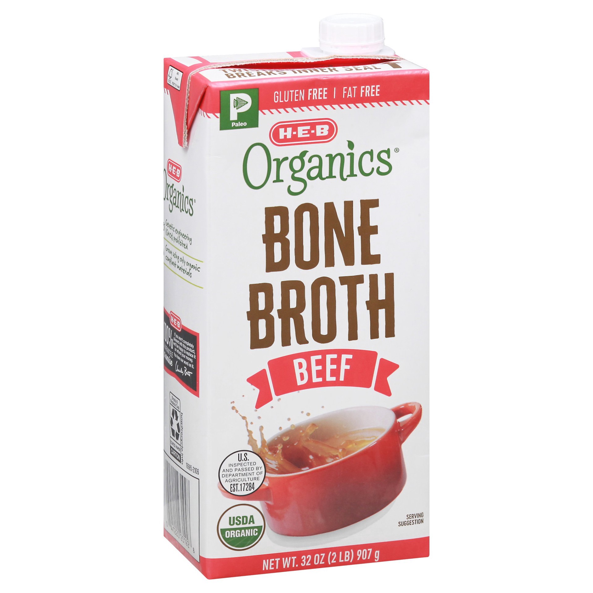Rich and full of beefy flavor, H-E-B Organics Beef Bone Broth can be substituted for traditional stock to make soup, stuffing and more. A good source of protein, it's suitable for gluten-free and Pale…