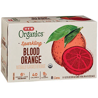 Try the sweet bubbly sensation of this H-E-B Organics sparkling beverage. Made with 6% organic blood orange juice from concentrate and organic sugar, it's only 40 calories per serving.• 8-pack of Bloo…