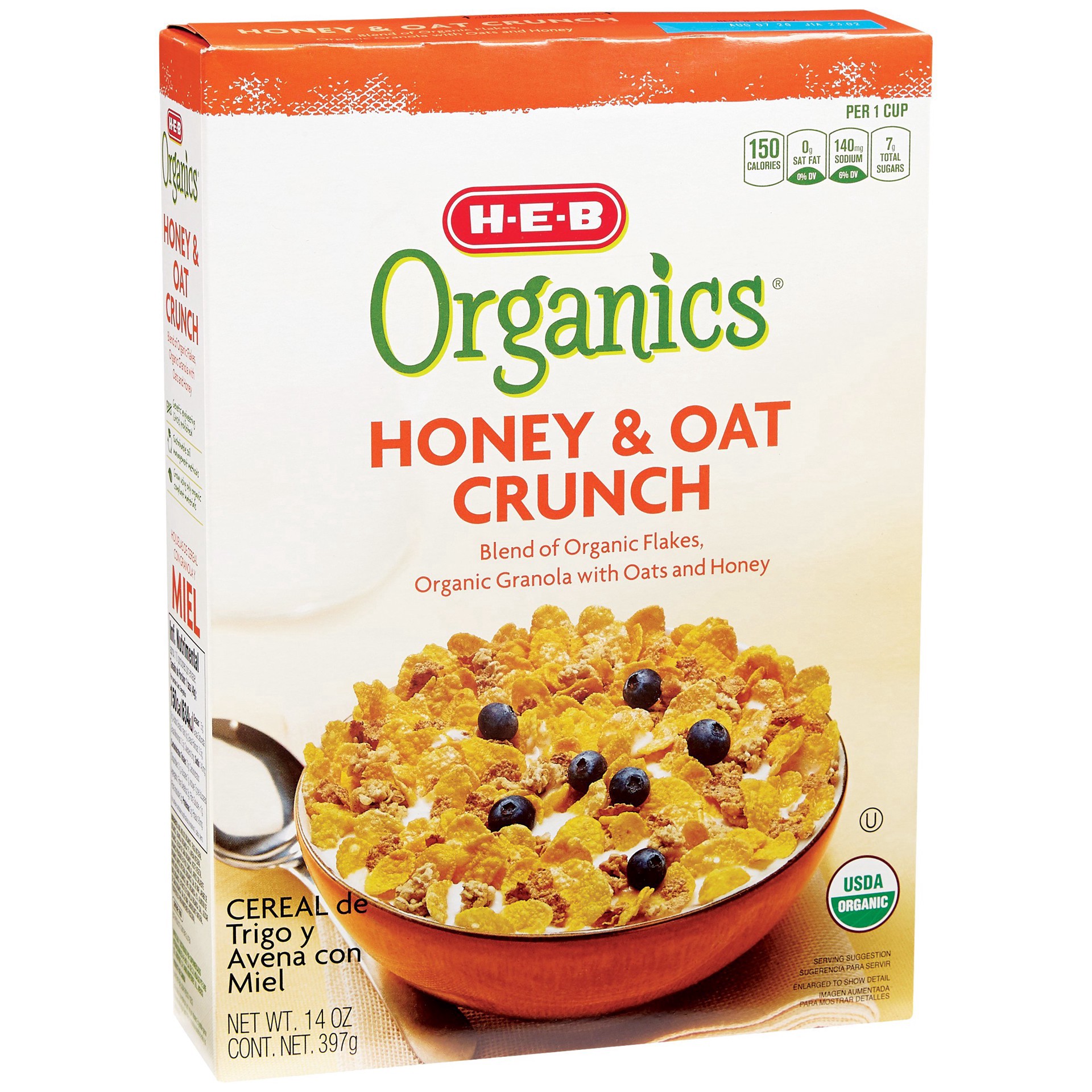 Blend of organic flakes, organic granola with oats and honey. About H-E-B Organics™ • Genetic engineering (GMOs) prohibited • Sustainable soul management methods • Grown using only organic compliant m…