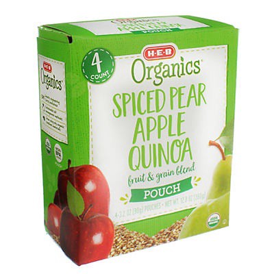 For a fresh and fun addition to packed lunches, pick up some H-E-B Organics Blended Fruit & Grain Pouches. Made with organic cinnamon-spiced apples, pureed pears and quinoa seeds, they have a wholesom…