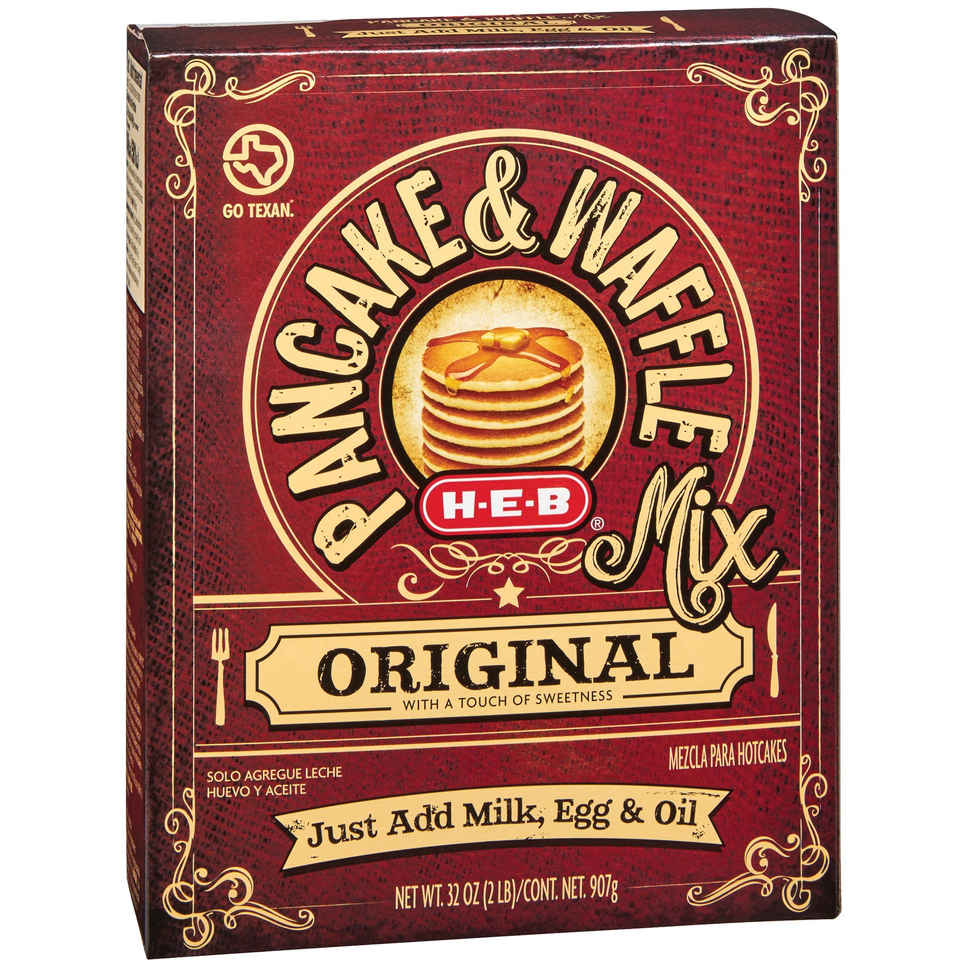 Made with American-grown wheat that's milled in San Antonio, H-E-B Original Pancake & Waffle Mix only requires milk, egg and oil to make light and fluffy pancakes and waffles. This mix is super handy …