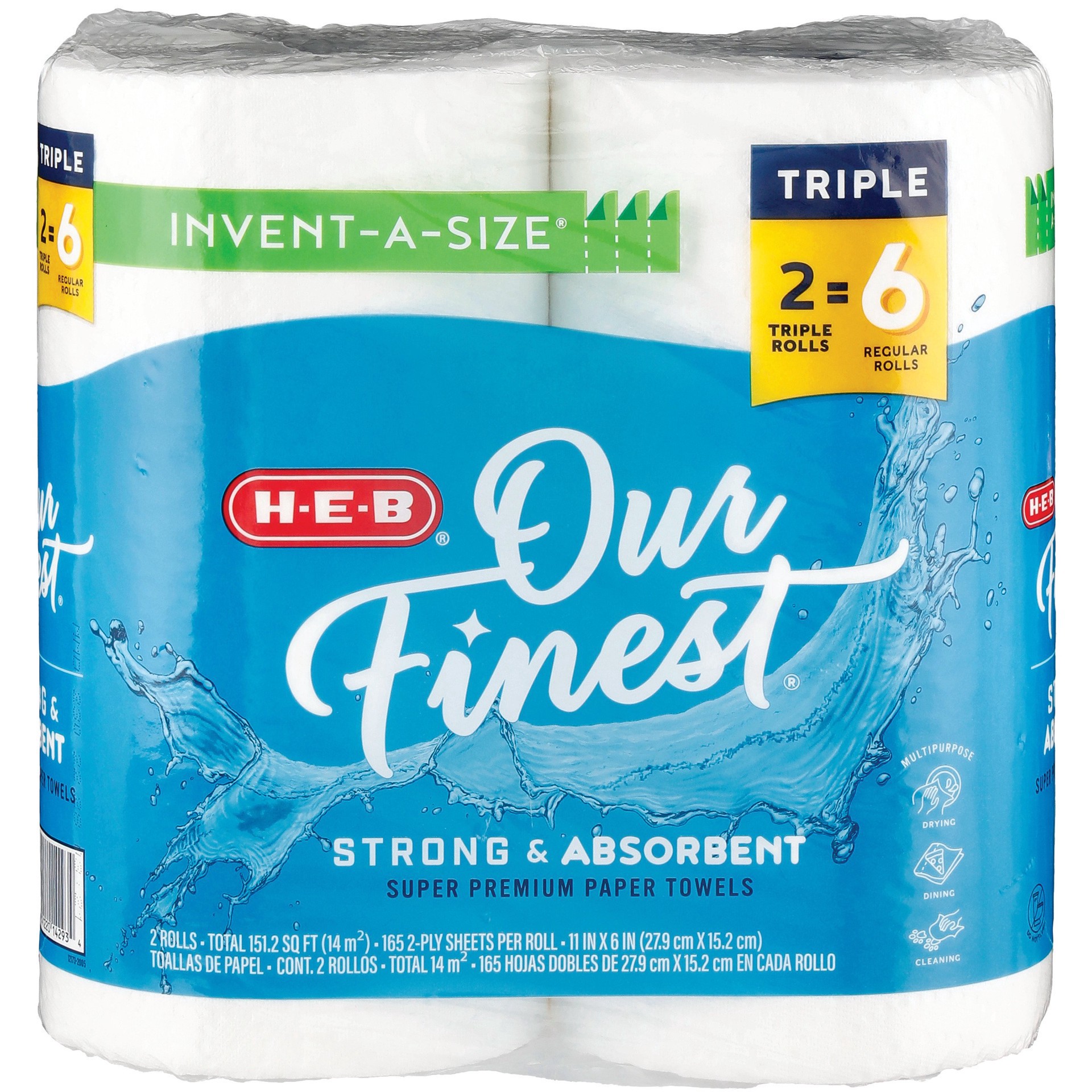 H-E-B Our Finest Invent-a-Size Paper Towels give you the freedom to rip the perfect amount of paper towel you need. Did that soda fizz pour over the glass? Or maybe today's the day to finally clean al…