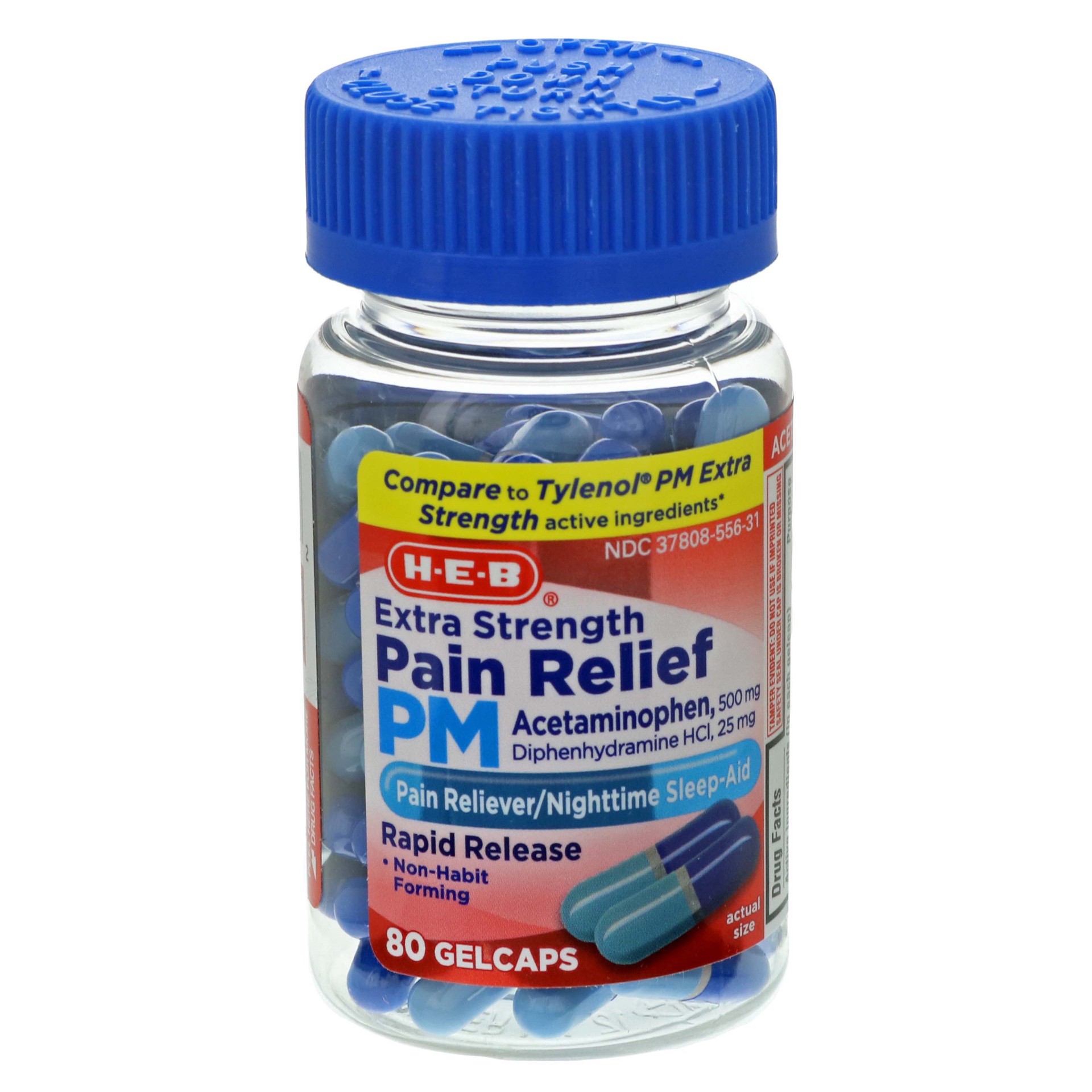 Stop pain in its tracks with our H-E-B Extra Strength Pain Relief PM. Just one caplet prevents and relieves body aches and pains. Provides fast relief so you can get back to enjoying sleep more fully.…
