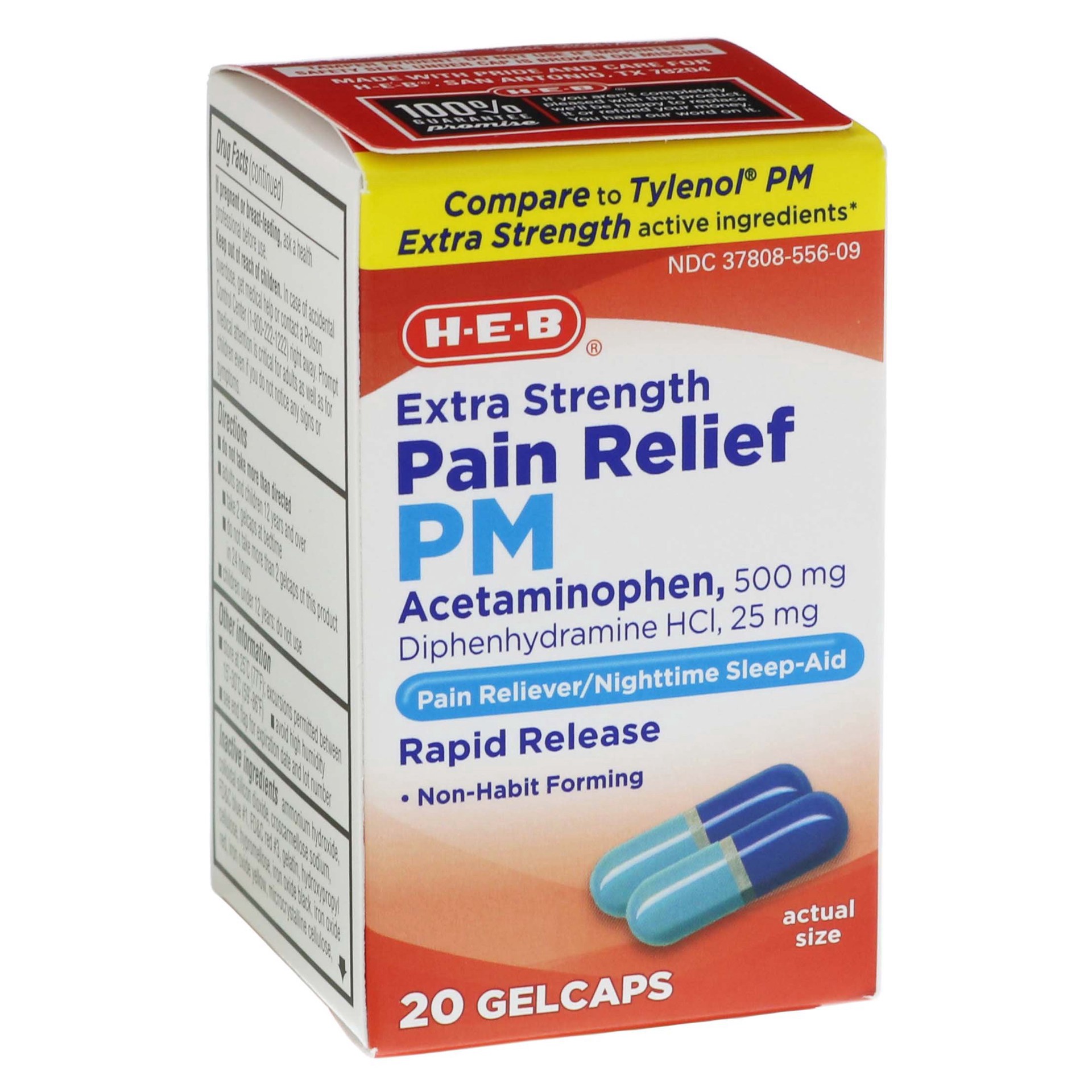 Stop pain in its tracks with our H-E-B Extra Strength Pain Relief PM. Just one caplet prevents and relieves body aches and pains. Provides fast relief so you can get back to enjoying sleep more fully.…
