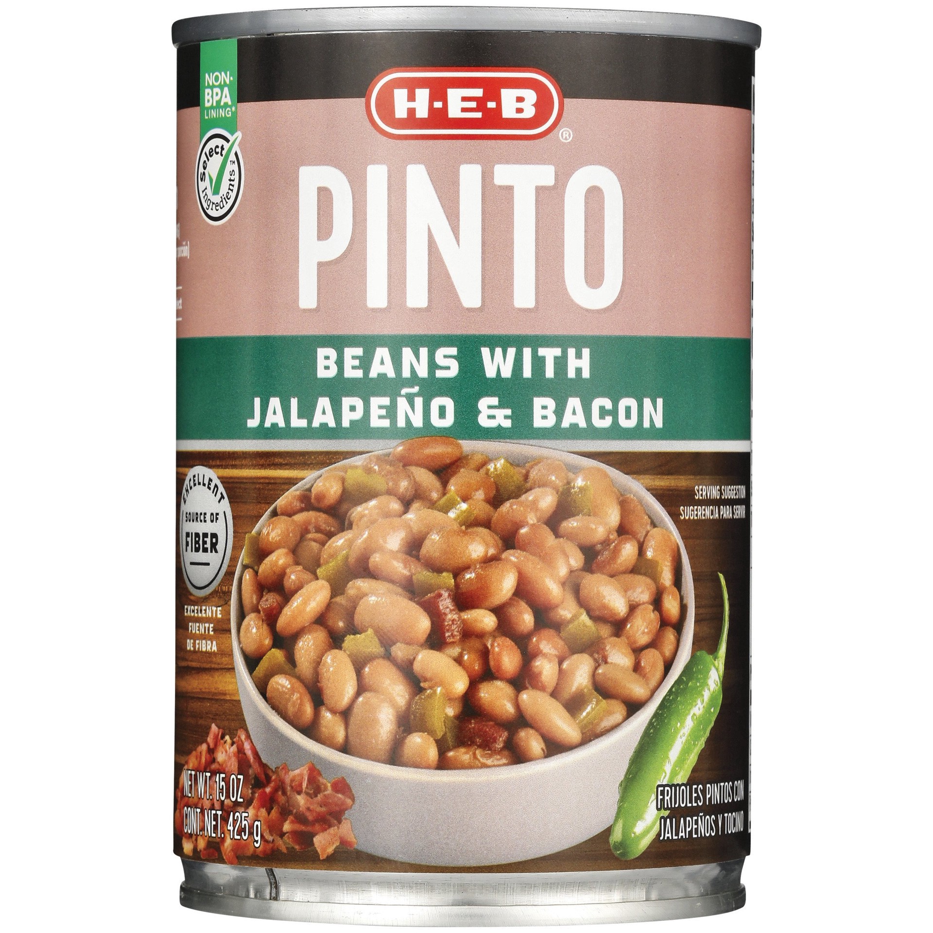 Prepared Pinto Beans, Water, JALAPEÑO Peppers, Contains 2% Or Less: Bacon (Cured With Water, Salt, Sugar, Sodium Phosphate, Sodium Erythorbate, Sodium Nitrite), Vinegar, Salt, Onion Powder.