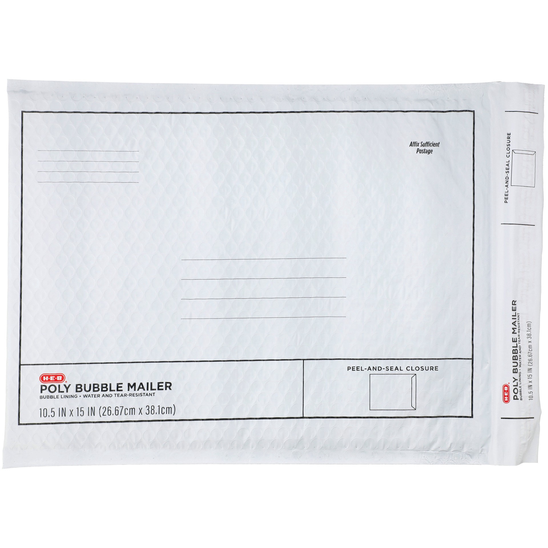 Protect your shipments with the H-E-B Poly Bubble Mailer. Measuring 10.5" x 15", this mailer is designed to securely hold and protect your items during transit. The poly material is both water and tea…
