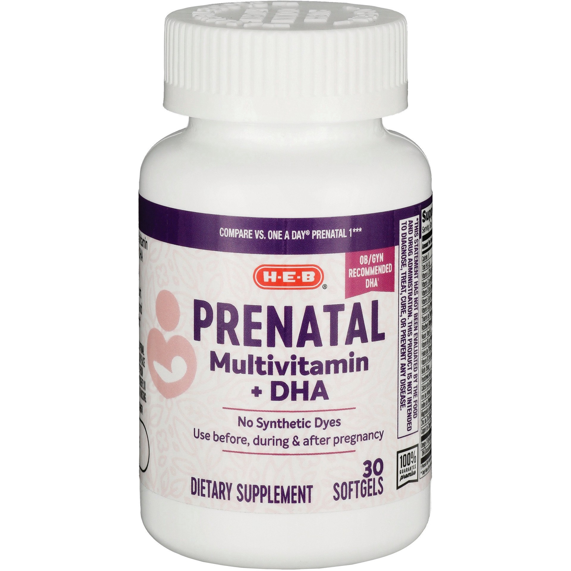 H-E-B Prenatal Multivitamin + DHA is a complete multivitamin supplement with OB/GYN recommended DHA. Take this supplement daily before, during and after pregnancy to support mom and baby. With OB/GYN …
