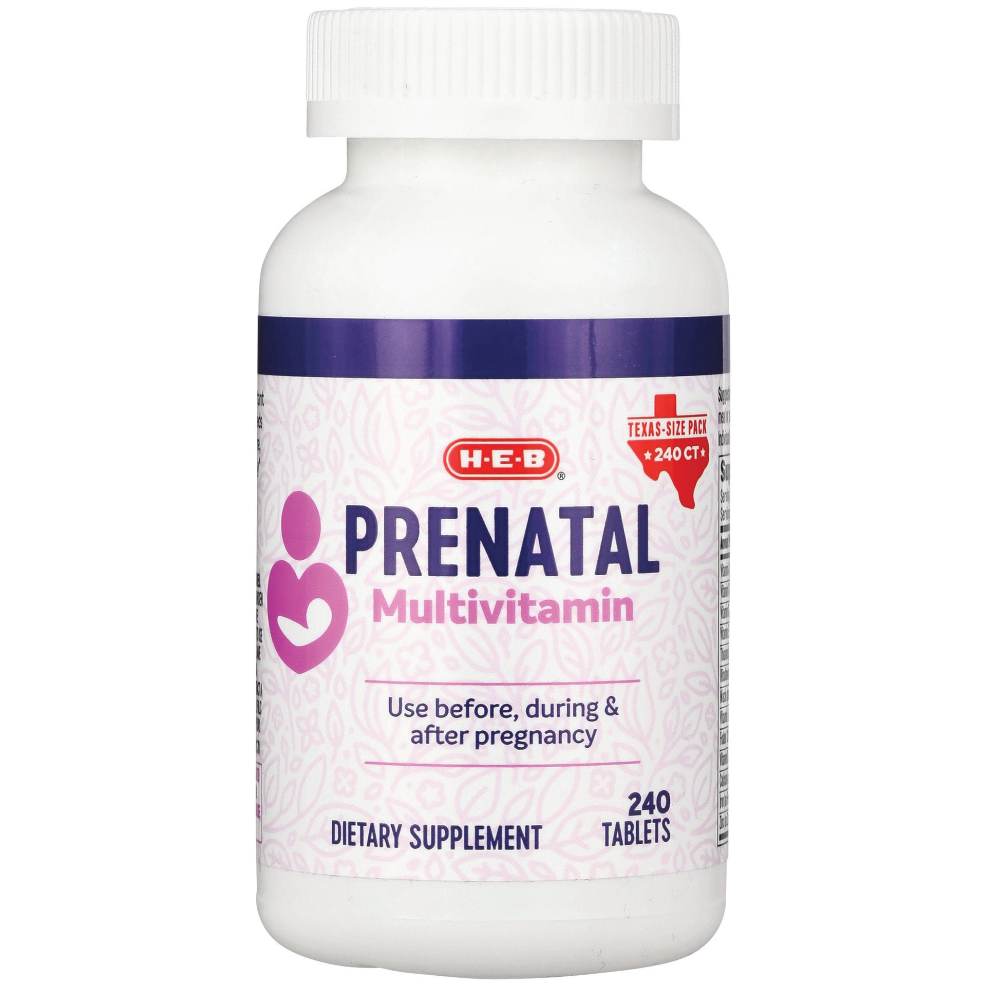 Take these H-E-B prenatal vitamin tablets and get a supplement specially designed to supply important nutrients to meet the needs of a woman's body. Add them to your routine before, during and after p…