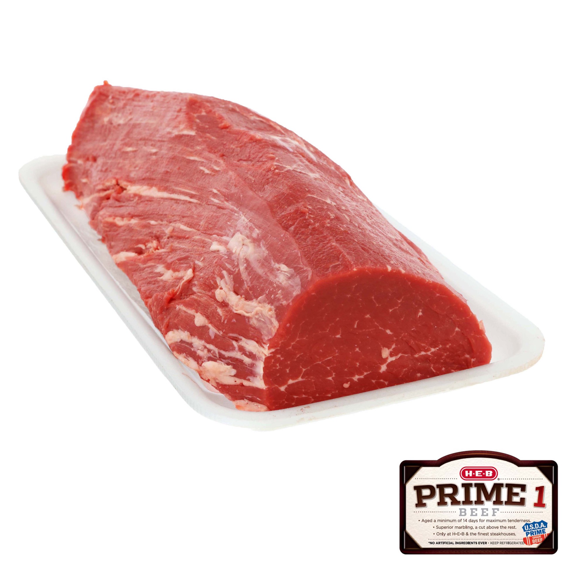 Specially trimmed by our certified meat cutters, this H-E-B Prime 1 Beef whole tenderloin ranks in top 10% of the nation's beef. A supremely tender type of meat, tenderloin has a rich mouthwatering fl…