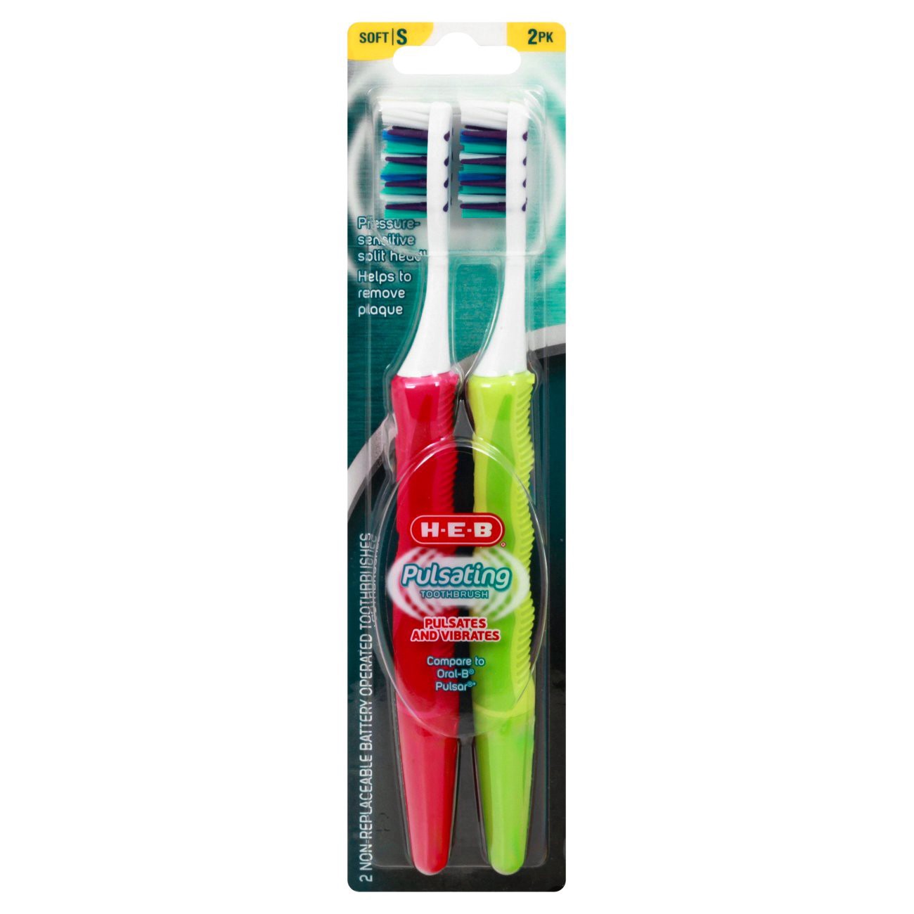 slide 1 of 1, H-E-B Pulsating Soft Toothbrushes, 2 ct