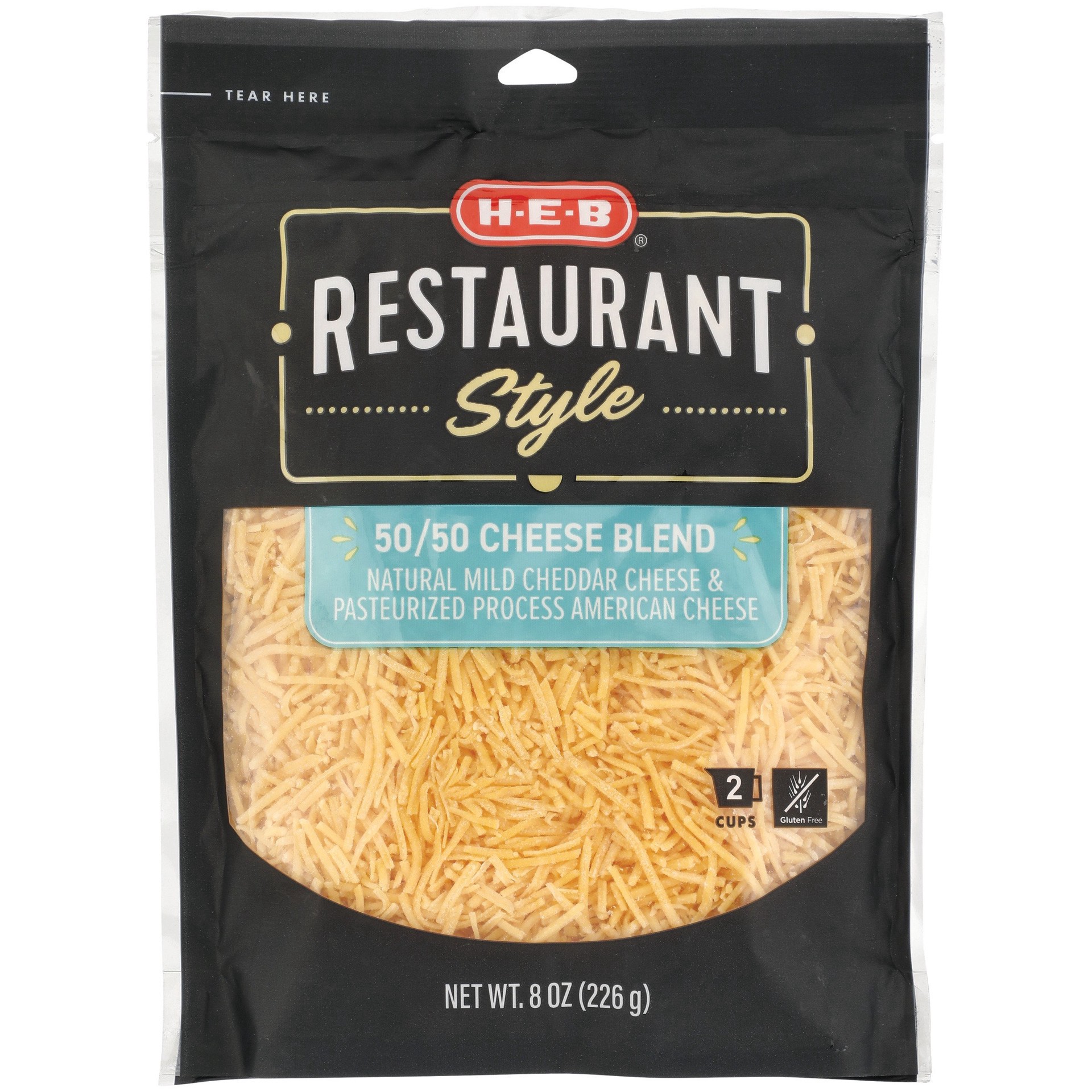 This H-E-B Restaurant Style blend of cheeses is absolutely ideal for melting. A delicious, savory 50/50 blend of natural mild cheddar cheese and American cheese, try on enchiladas, breakfast tacos, lo…