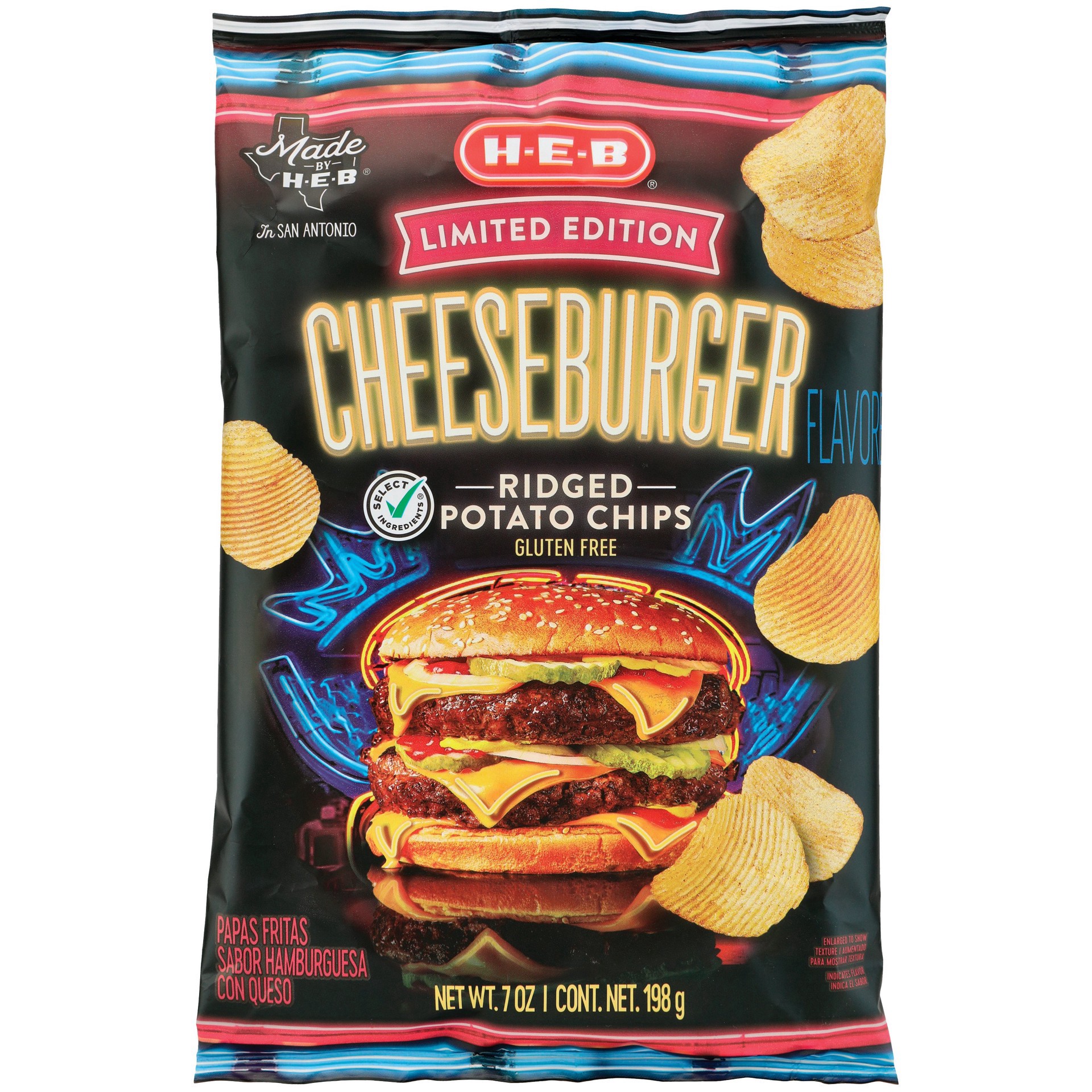 Inspired by late-night snacking, these H-E-B potato chips taste like a classic cheeseburger. Their complex flavor profile includes savory beef, melted cheese and burger toppings like ketchup, mustard,…