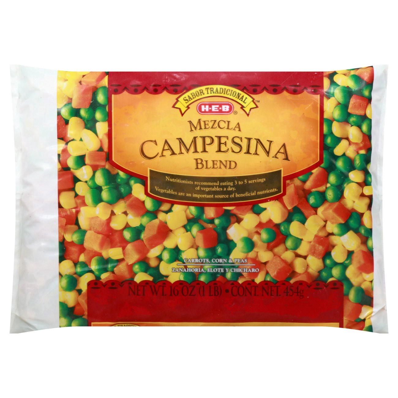 A country-style mix of carrots, corn and peas, H-E-B Frozen Sabor Tradicional Mezcla Campesina is a great addition to homemade soup or pasta salad. Quick to prepare on the stovetop or in the microwave…