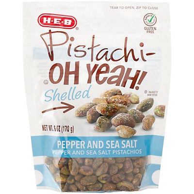 We kept the flavor but ditched the shells for H-E-B Pistachi-OH YEAH! Shelled Pistachios. Sit back, relax and enjoy the vibrant flavors without all the work. H-E-B Select Ingredients items are made wi…