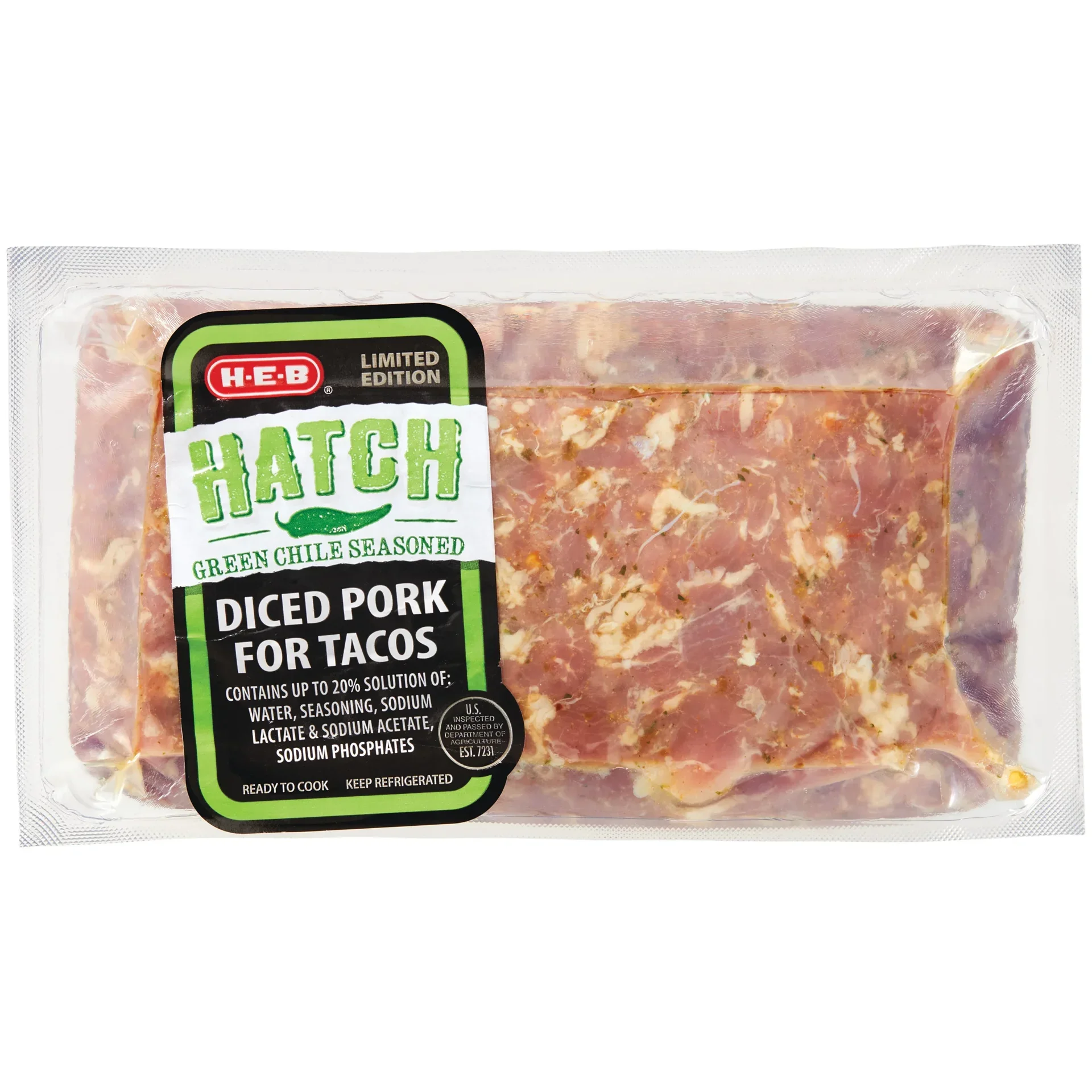 Perfect for tacos and more, this diced pork from H-E-B is seasoned with a lively blend of hatch chile peppers, jalapeños and spices. Convenient especially on a busy evening, it saves you a step or two…