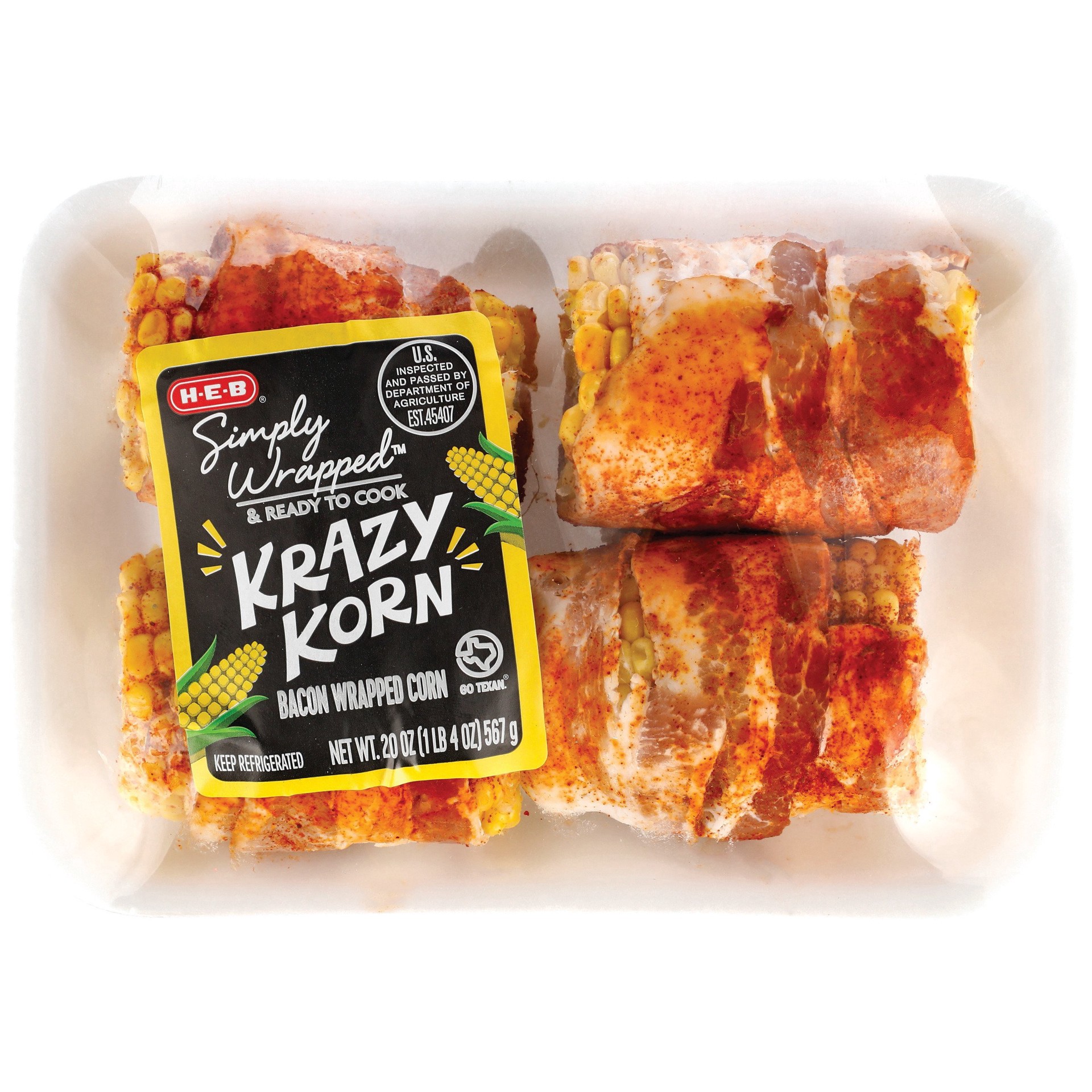 H-E-B Simply Wrapped Krazy Korn is a savory twist on a classic. Seasoned with paprika and other spices and wrapped in bacon, these four mini cobs of corn are ready to cook on the grill or in the oven.…