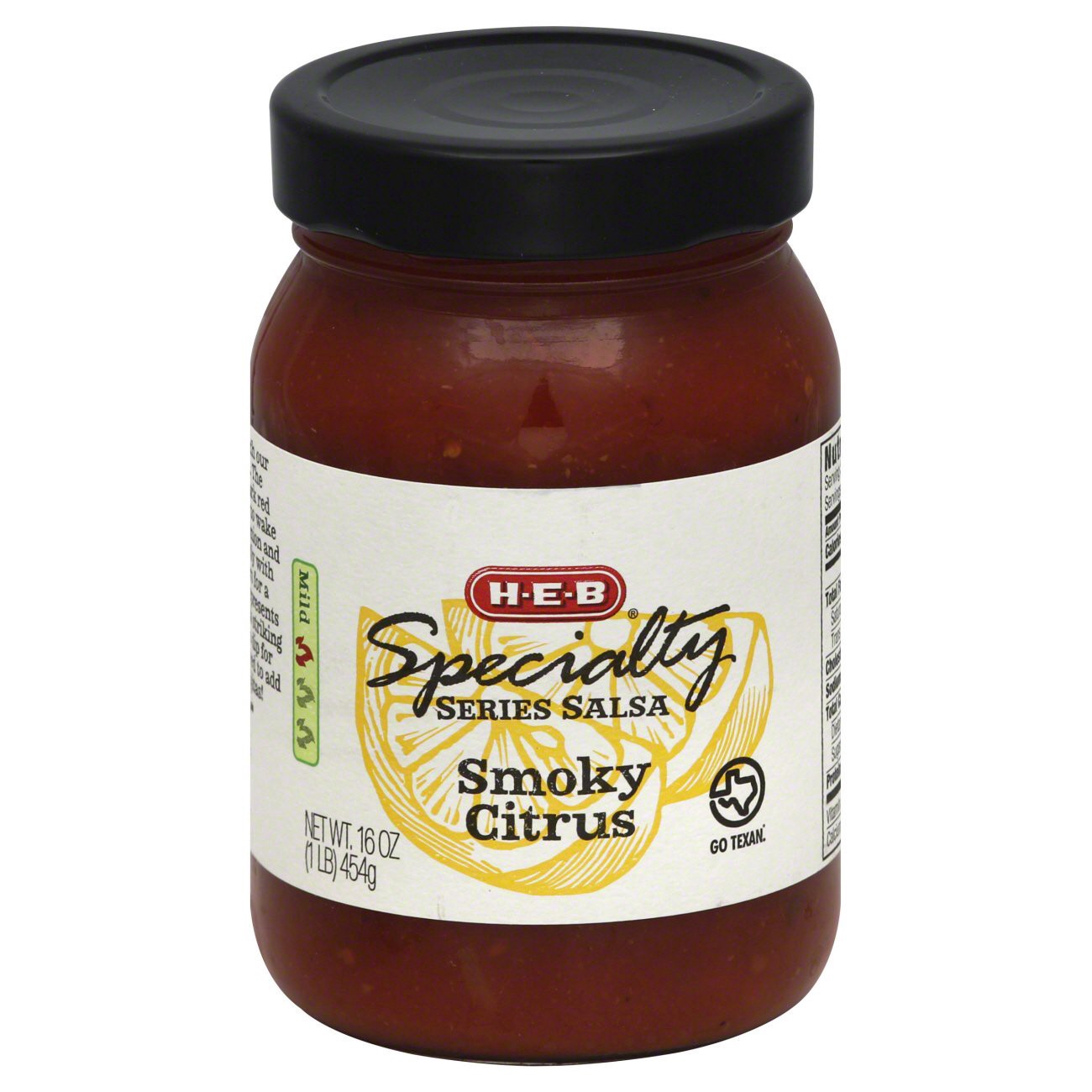 Dark red in color, H-E-B Smoky Citrus salsa is a vibrant blend of onion, chipotle peppers, jalapeños, tomatoes and lemon juice. Inspired by the flavors of South Texas, it's part of our Specialty Serie…